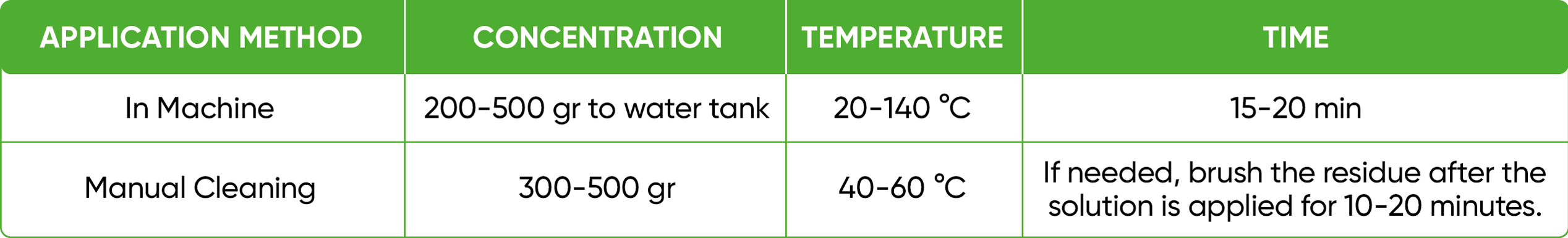 It dissolves fat and proteins with strong effect by forming a fixed foam on the surface.